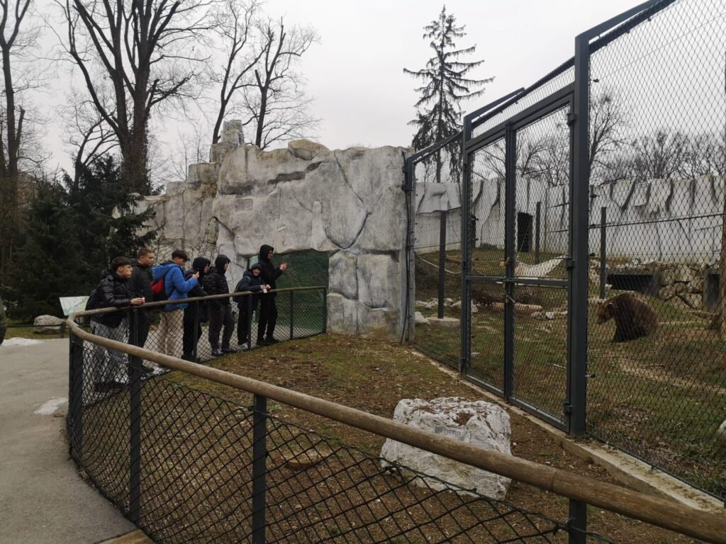 U srijedu, 21. 1. 2026. naši učenici 1. b razreda su u pratnji nastavnika Mislava Borovca posjetili Zoološki vrtu u Maksimiru. Cilj posjeta je upoznavanje s modelima ekosustava i njihovim stanovnicima, u sklopu terenske nastave iz Ekologije i održivog razvoja. Učenici su imali priliku vidjeti egzotične životinje i egzotične vremenske prilike. Favoriti su bili znatiželjni medvjedi i razgovorljive papige. Na njihovu sreću majmunarnik je bio otvoren, ali majmuni nisu baš bili gostoljubivi…