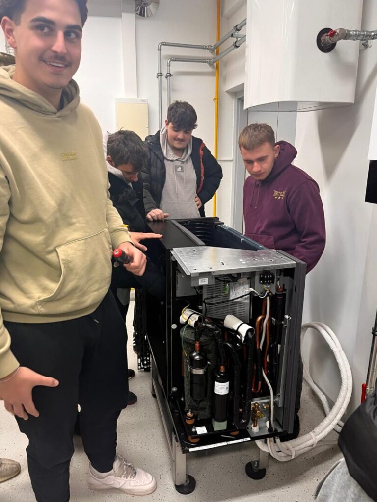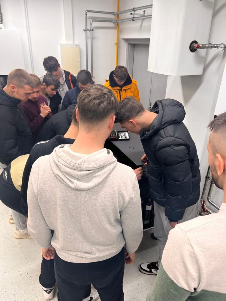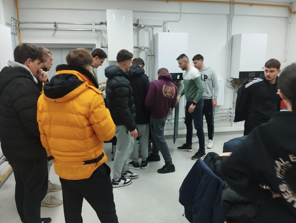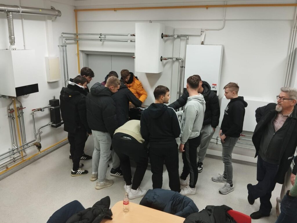 U četvrtak, 4.12.2025., učenici 4.c razreda kao budući tehničari za energetiku, imali su priliku upoznati se s najnovijim sustavima grijanja/hlađenja renomirane tvrtke Viessmann i konkretno isprobati kako izgleda rad servisera u njihovom pokaznom centru. Učenici su iskazali ozbiljan interes za opremu i aktivno sudjelovali u detaljnoj analizi sustava dizalica topline i kondenzacijskih plinskih bojlera. Tvrtku su posjetili u pratnji strukovnog učitelja M. Lugarića i suradnika u nastavi A. Paradžikovića.