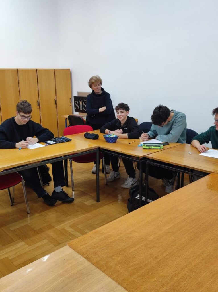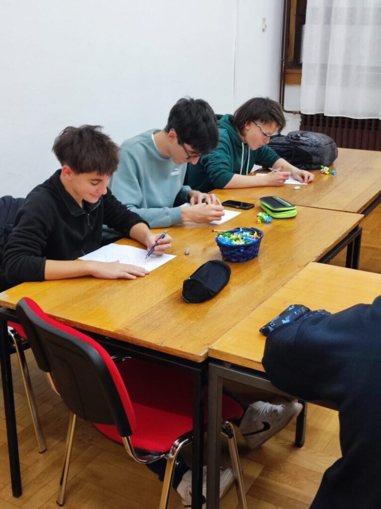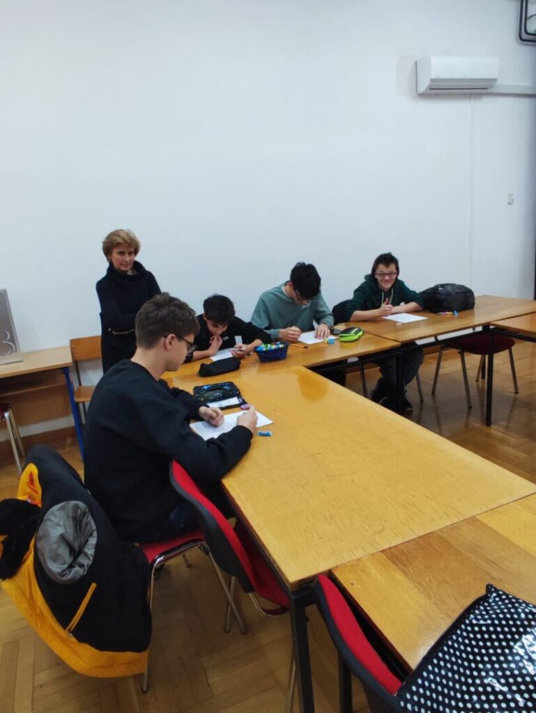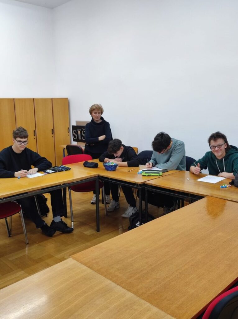 I ove školske godine naši učenici sudjelovali su u projektu Večer matematike u organizaciji Hrvatskog matematičkog društva. Uz vodstvo nastavnica matematike Monike Kolar i Zorice Grgić, učenici 2.a i 2.b razreda su u četvrtak, 4.12.2025. u popodnevnim satima nakon redovne nastave rješavali složene problemske zadatke iz matematike. Projekt potiče izgradnju pozitivnog stava učenika prema matematici i otkrivanje zabavne strane tog predmeta. Pohvale učenicima i nastavnicama za sudjelovanje!